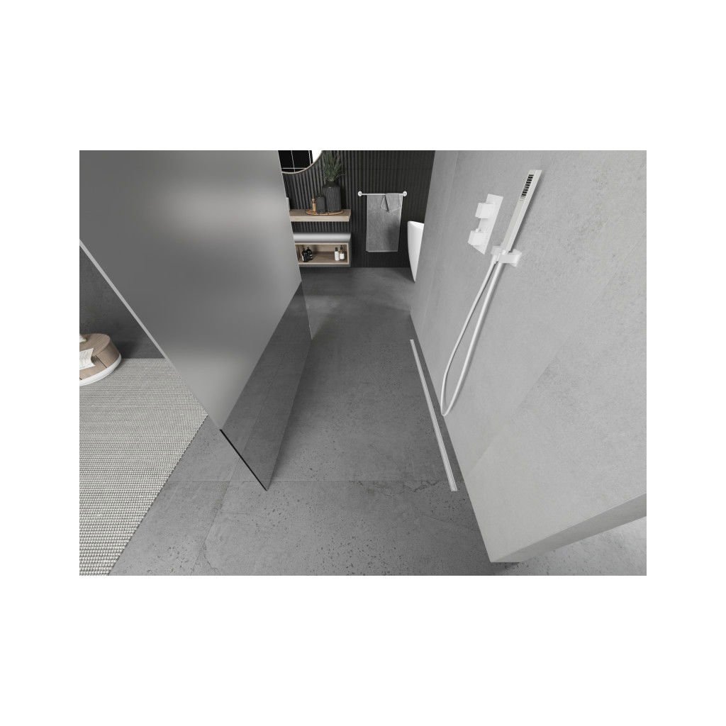Mexen Kioto, průchozí sprchová zástěna 110 x 200 cm, 8mm čiré sklo/námraza, 2x bílá stabilizační rozpěra, 800-110-002-20-35