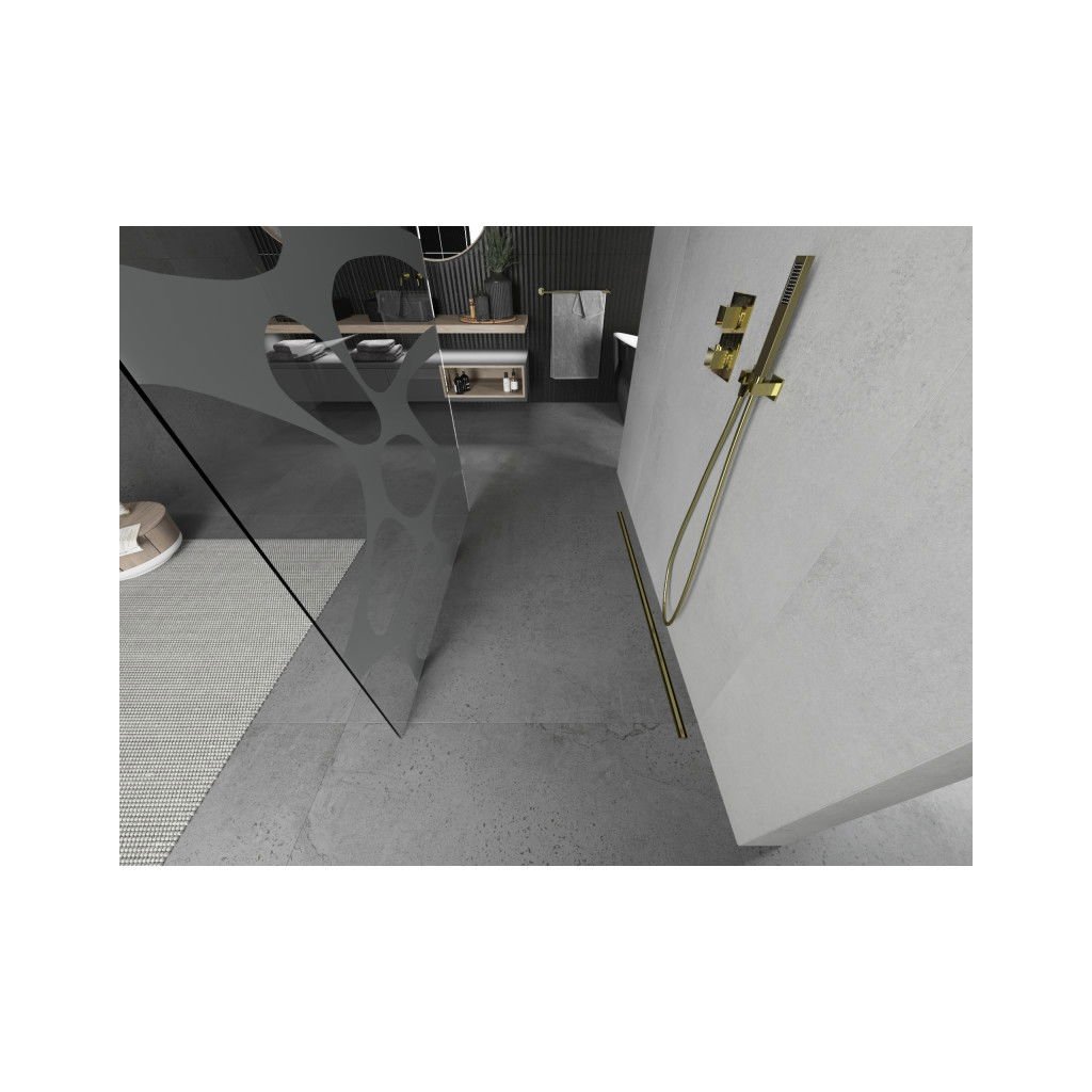 Mexen Kioto, průchozí sprchová zástěna 120 x 200 cm, 8mm sklo čiré/bílý vzor, 2x zlatá stabilizační rozpěra, 800-120-002-50-97