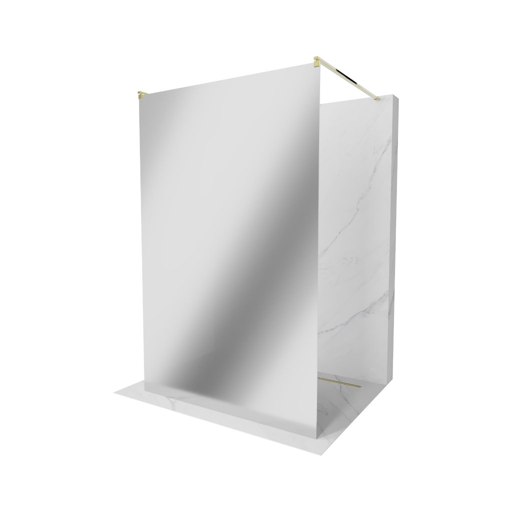 Mexen Kioto, průchozí sprchová zástěna 120 x 200 cm, 8mm sklo vzor zrcadlo, 2x zlatá stabilizační rozpěra, 800-120-002-50-50