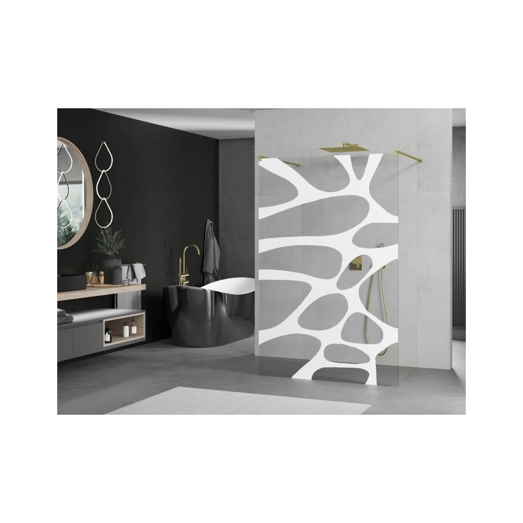 Mexen Kioto, průchozí sprchová zástěna 140 x 200 cm, 8mm sklo čiré/bílý vzor, 2x zlatá stabilizační rozpěra, 800-140-002-50-97