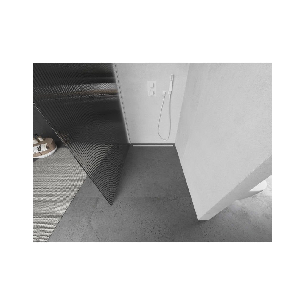 Mexen Kioto, sprchová zástěna 70 x 200 cm, 8mm sklo s žebrovým vzorem, bílý profil, 800-070-101-20-09