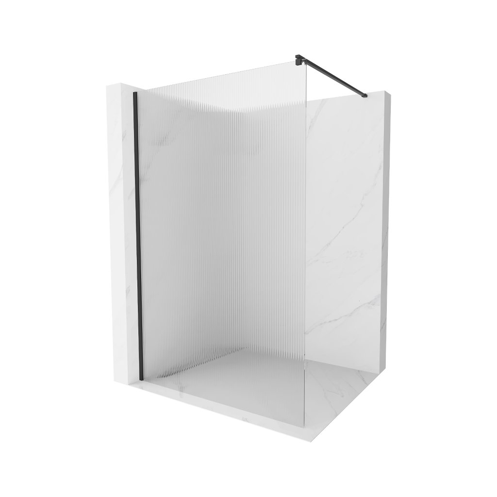 Mexen Kioto, sprchová zástěna 80 x 200 cm, 8mm sklo s žebrovým vzorem, černý profil, 800-080-101-70-09
