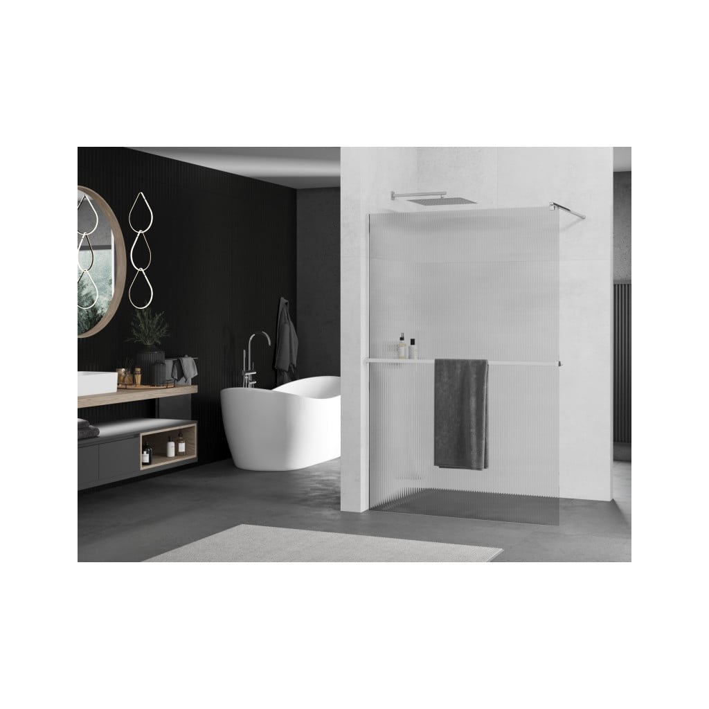 Mexen Kioto, sprchová zástěna s poličkou a věšákem na ručníky 90 x 200 cm, 8mm sklo s žebrovým vzorem, chromový profil, 800-090-121-01-09