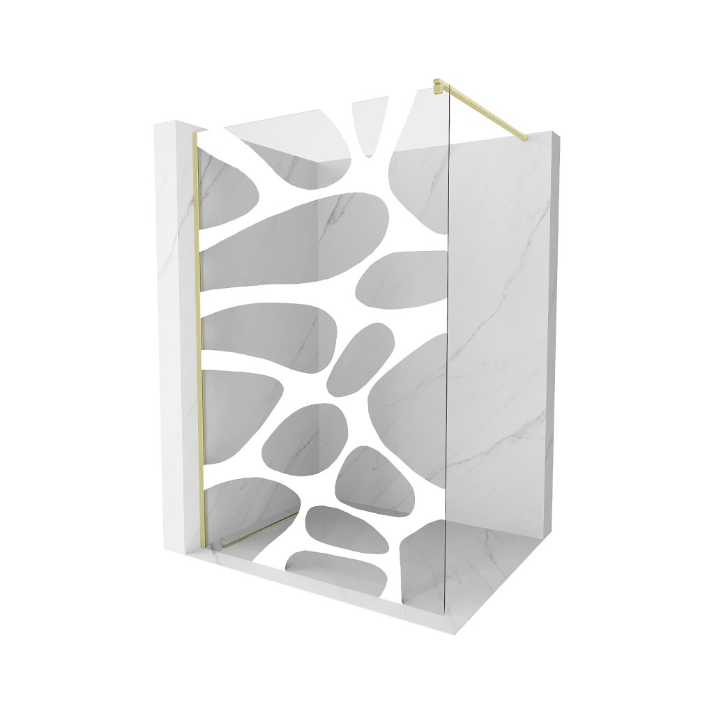 Mexen Kioto, sprchová zástěna Walk-In 100 x 200 cm, 8mm čiré sklo bílý vzor, zlatý matný profil, 800-100-101-55-97