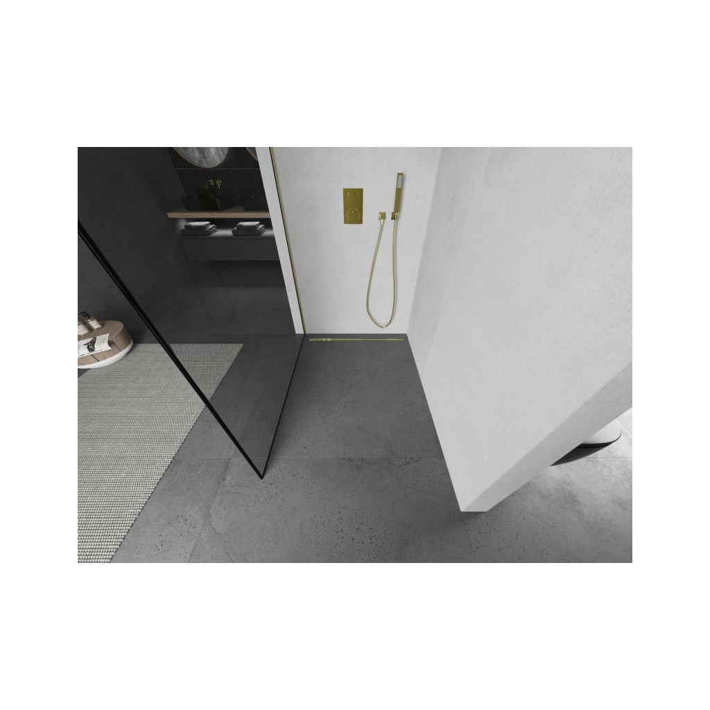 Mexen Kioto, sprchová zástěna Walk-In 100 x 200 cm, 8mm čiré sklo černý vzor, zlatý matný profil, 800-100-101-55-70