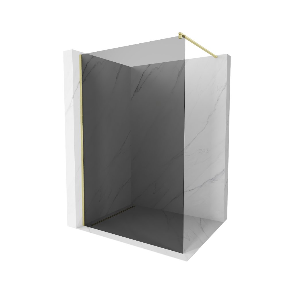 Mexen Kioto, sprchová zástěna Walk-In 100 x 200 cm, 8mm šedé sklo, zlatý matný profil, 800-100-101-55-40