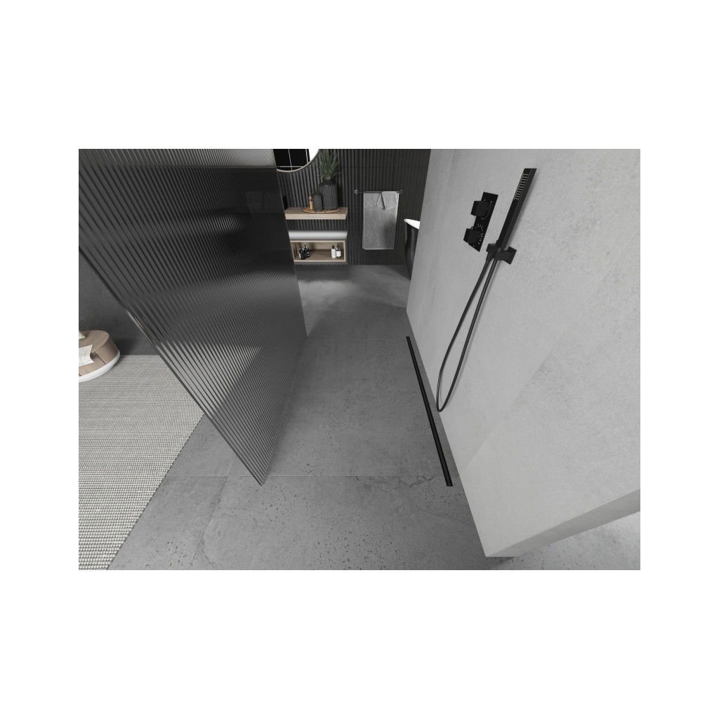 Mexen Kioto, sprchová zástěna Walk-In 100 x 200 cm, 8mm sklo s žebrovým vzorem, černý profil, 800-100-002-70-09