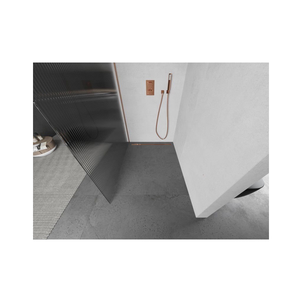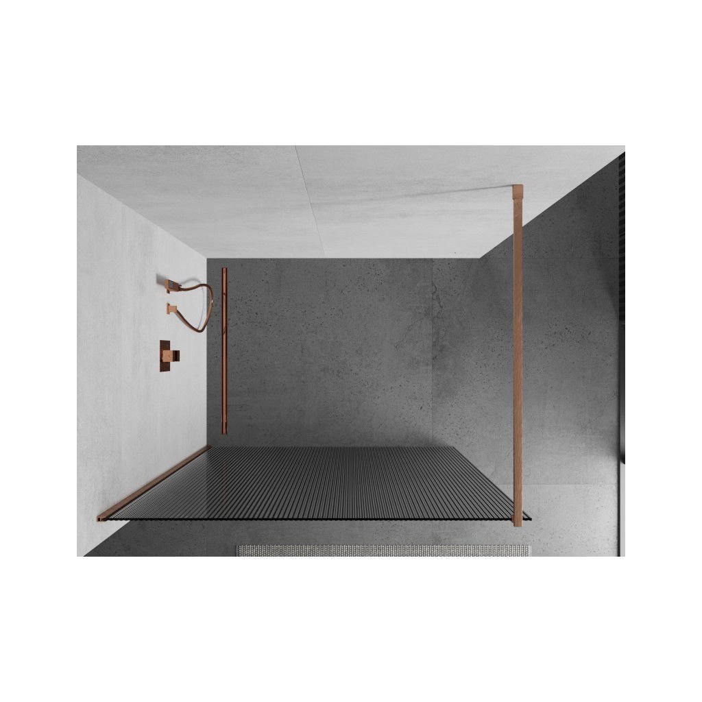 Mexen Kioto, sprchová zástěna Walk-In 100 x 200 cm, 8mm sklo s žebrovým vzorem, měděný matný profil, 800-100-101-65-09