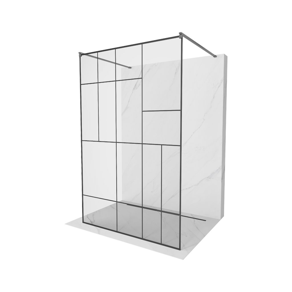 Mexen Kioto, sprchová zástěna Walk-In 120 x 200 cm, 8mm sklo černý vzor, grafitový profil, 800-120-002-66-78