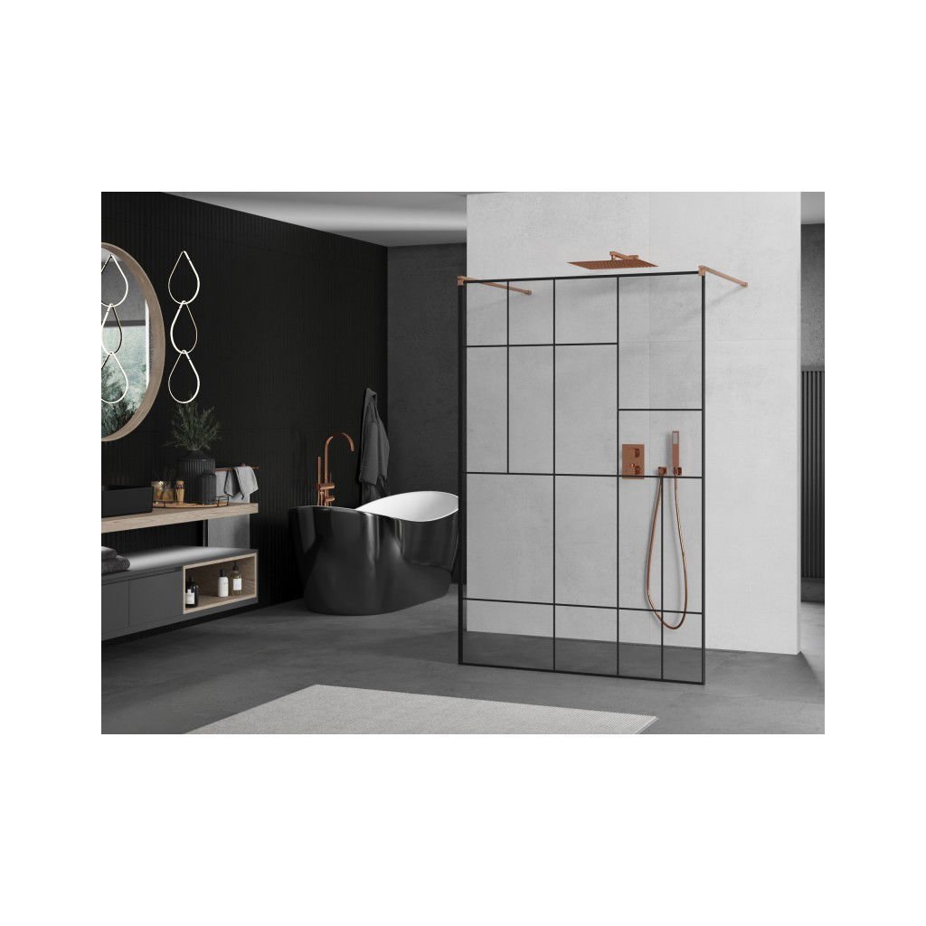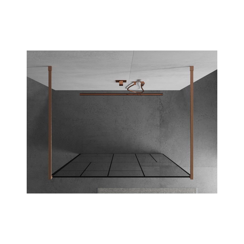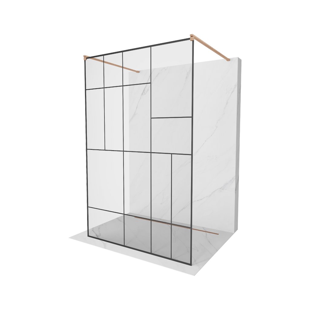 Mexen Kioto, sprchová zástěna Walk-In 120 x 200 cm, 8mm sklo černý vzor, měděný matný profil, 800-120-002-65-78
