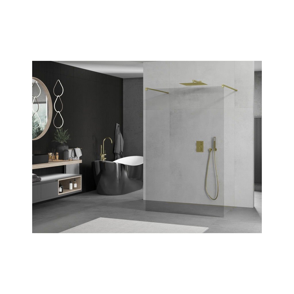 Mexen Kioto, sprchová zástěna Walk-In 125 x 200 cm, 8mm čiré sklo, zlatý lesklý profil, 800-125-002-50-00
