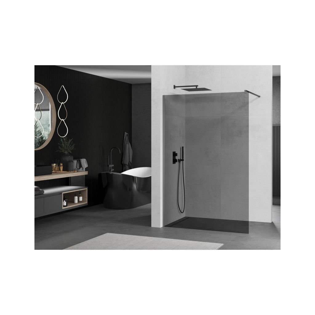Mexen Kioto, sprchová zástěna Walk-In 130 x 200 cm, 8mm šedé sklo, grafitový profil, 800-130-101-95-40