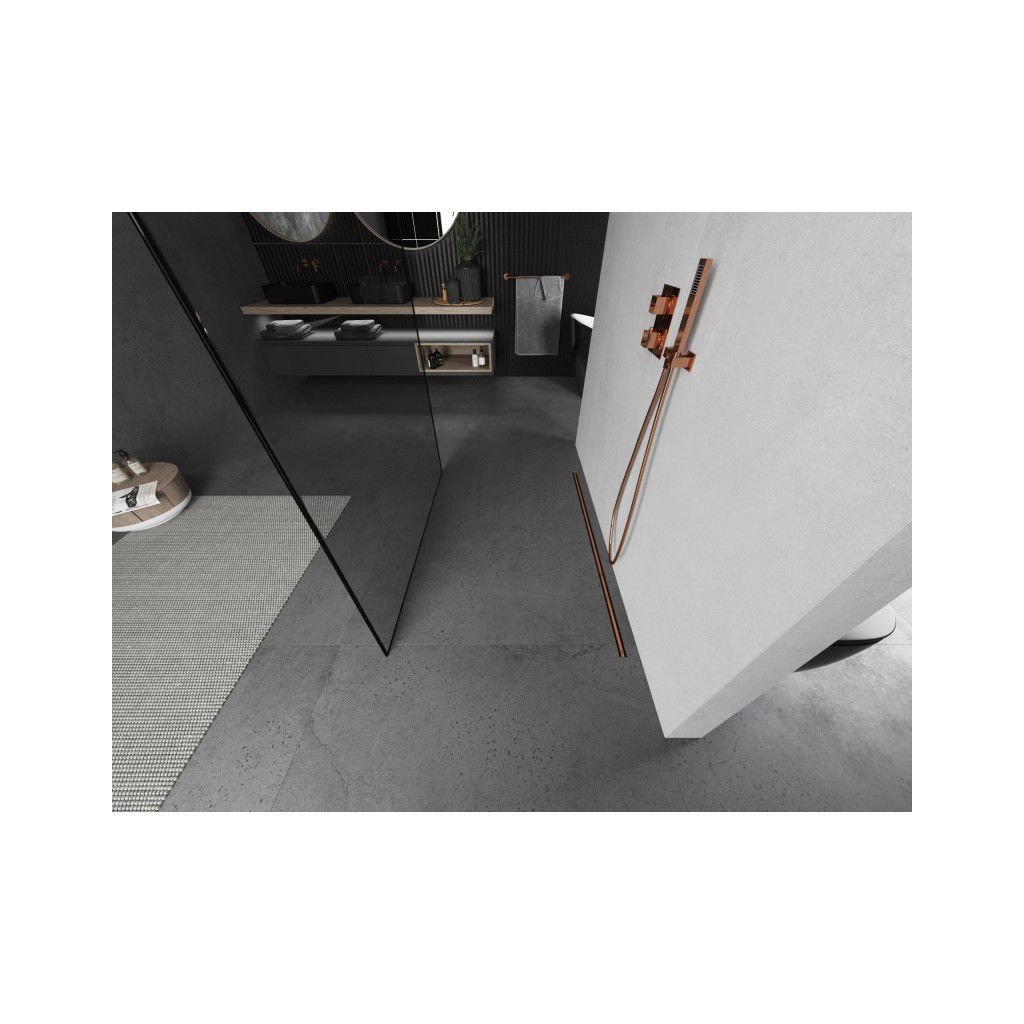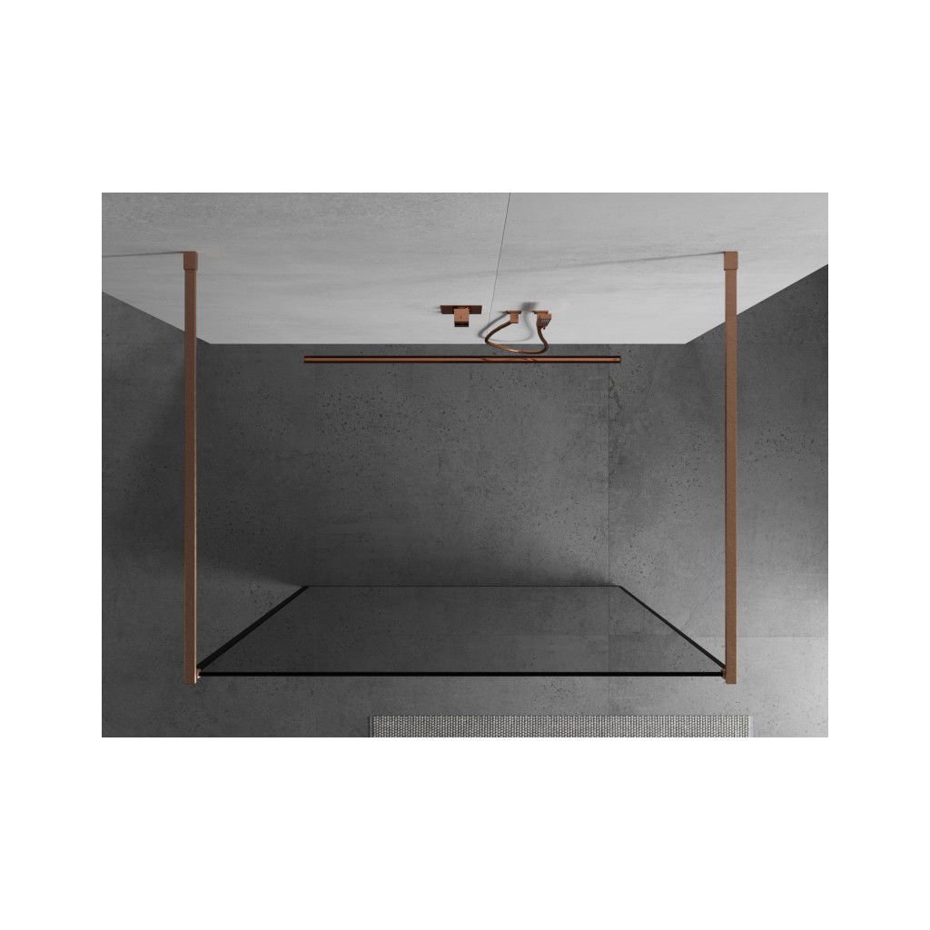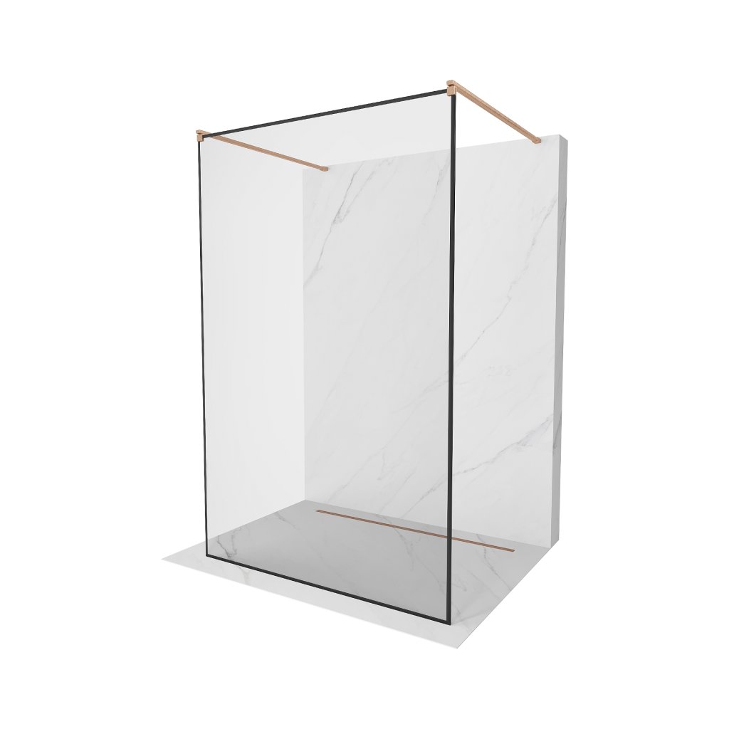 Mexen Kioto, sprchová zástěna Walk-In 130 x 200 cm, 8mm sklo černý vzor, měděný matný profil, 800-130-002-65-70