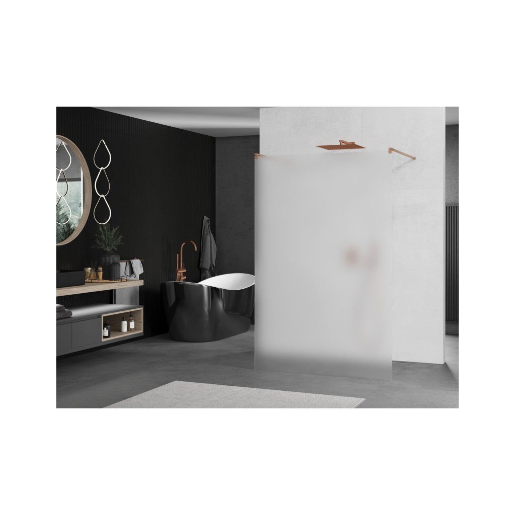 Mexen Kioto, sprchová zástěna Walk-In 130 x 200 cm, 8mm sklo námraza, měděný matný profil, 800-130-002-65-30