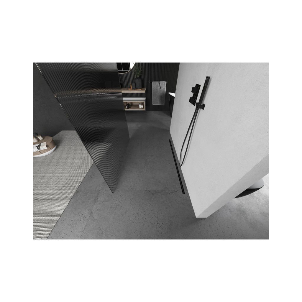 Mexen Kioto, sprchová zástěna Walk-In 130 x 200 cm, 8mm sklo s žebrovým vzorem, grafitový profil, 800-130-002-66-09