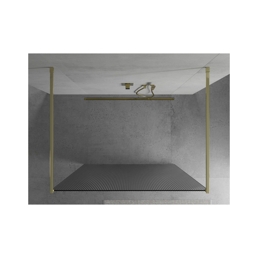 Mexen Kioto, sprchová zástěna Walk-In 130 x 200 cm, 8mm sklo s žebrovým vzorem, zlatý profil, 800-130-002-50-09