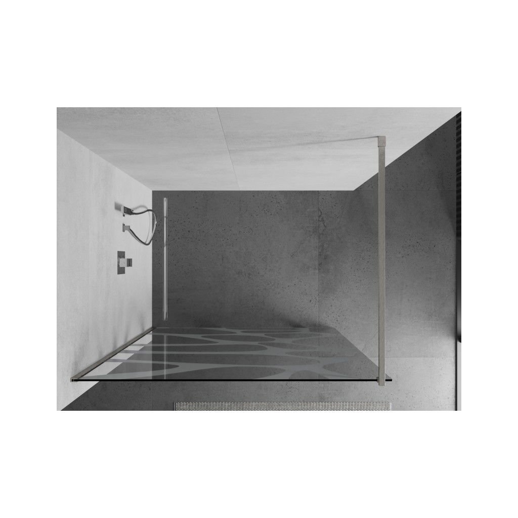 Mexen Kioto, sprchová zástěna Walk-In 140 x 200 cm, 8mm čiré sklo bílý vzor, broušená ocel profil, 800-140-101-97-97