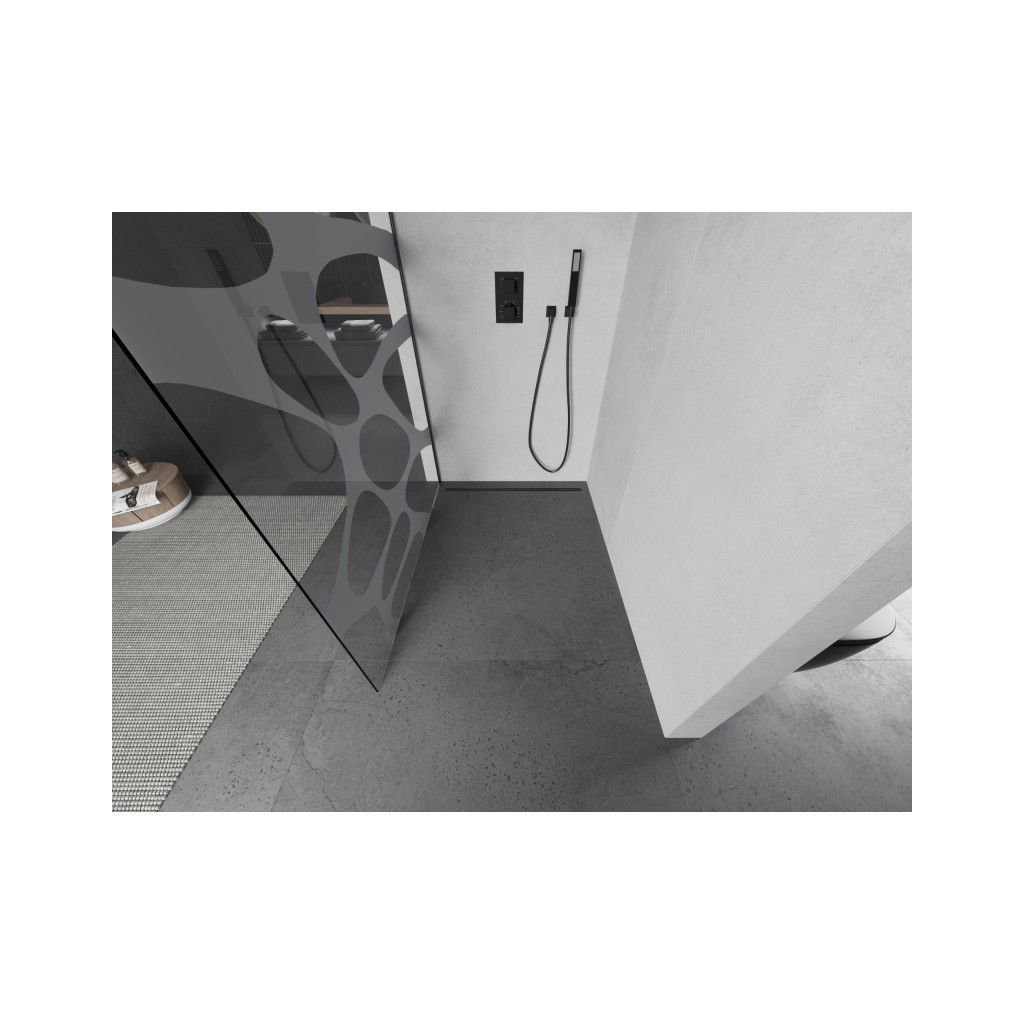 Mexen Kioto, sprchová zástěna Walk-In 140 x 200 cm, 8mm čiré sklo bílý vzor, grafitový profil, 800-140-101-95-97