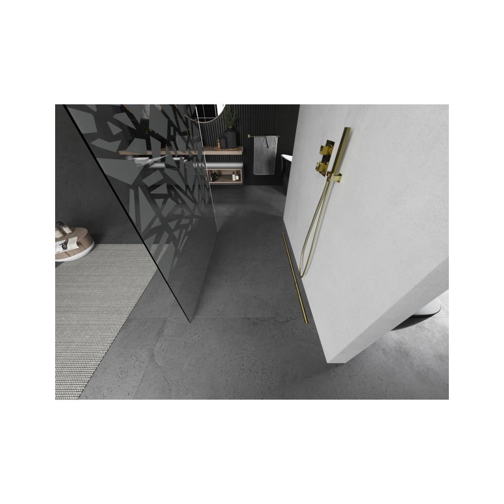 Mexen Kioto, sprchová zástěna Walk-In 140 x 200 cm, 8mm čiré sklo bílý vzor, zlatý matný profil, 800-140-002-55-85