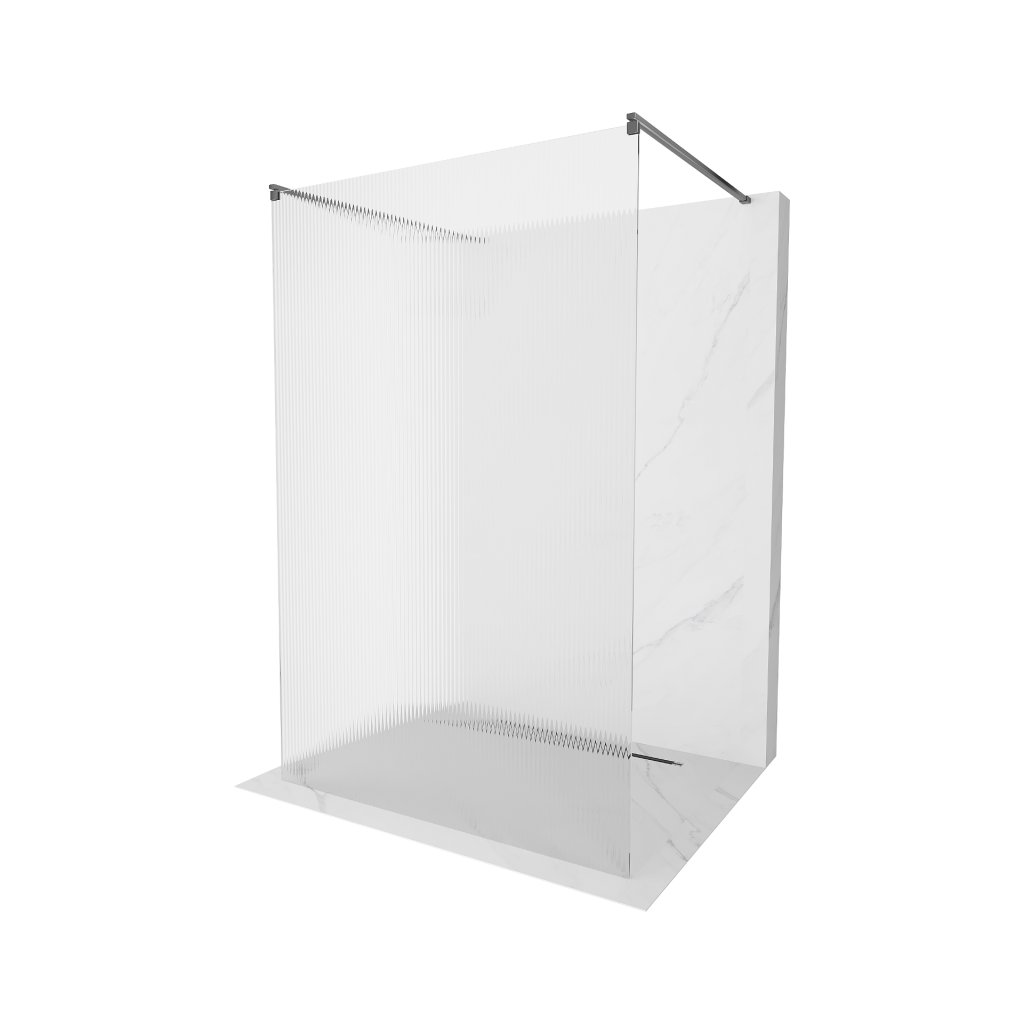 Mexen Kioto, sprchová zástěna Walk-In 140 x 200 cm, 8mm sklo s žebrovým vzorem, grafitový profil, 800-140-002-95-09