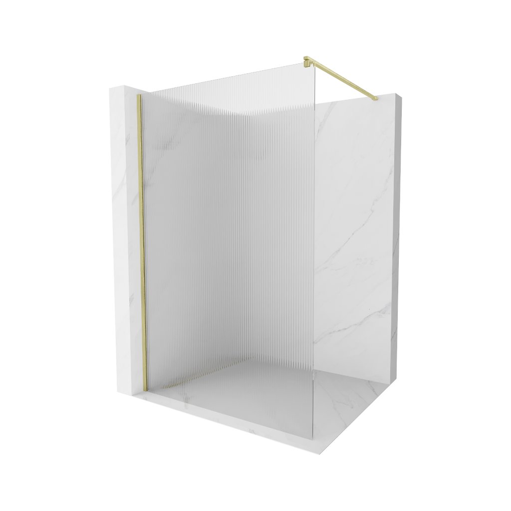 Mexen Kioto, sprchová zástěna Walk-In 140 x 200 cm, 8mm sklo s žebrovým vzorem, zlatý matný profil, 800-140-101-55-09