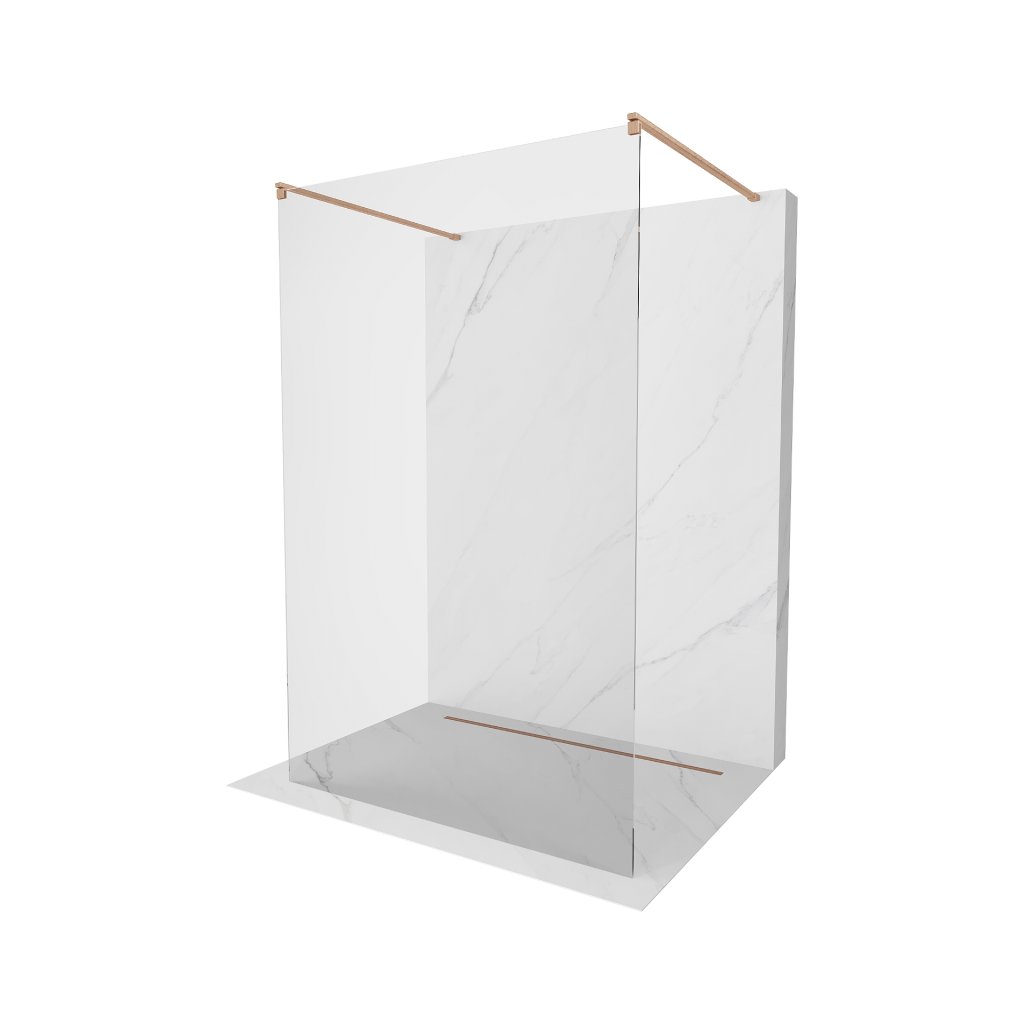 Mexen Kioto, sprchová zástěna Walk-In 150 x 200 cm, 8mm čiré sklo, měděný matný profil, 800-150-002-65-00