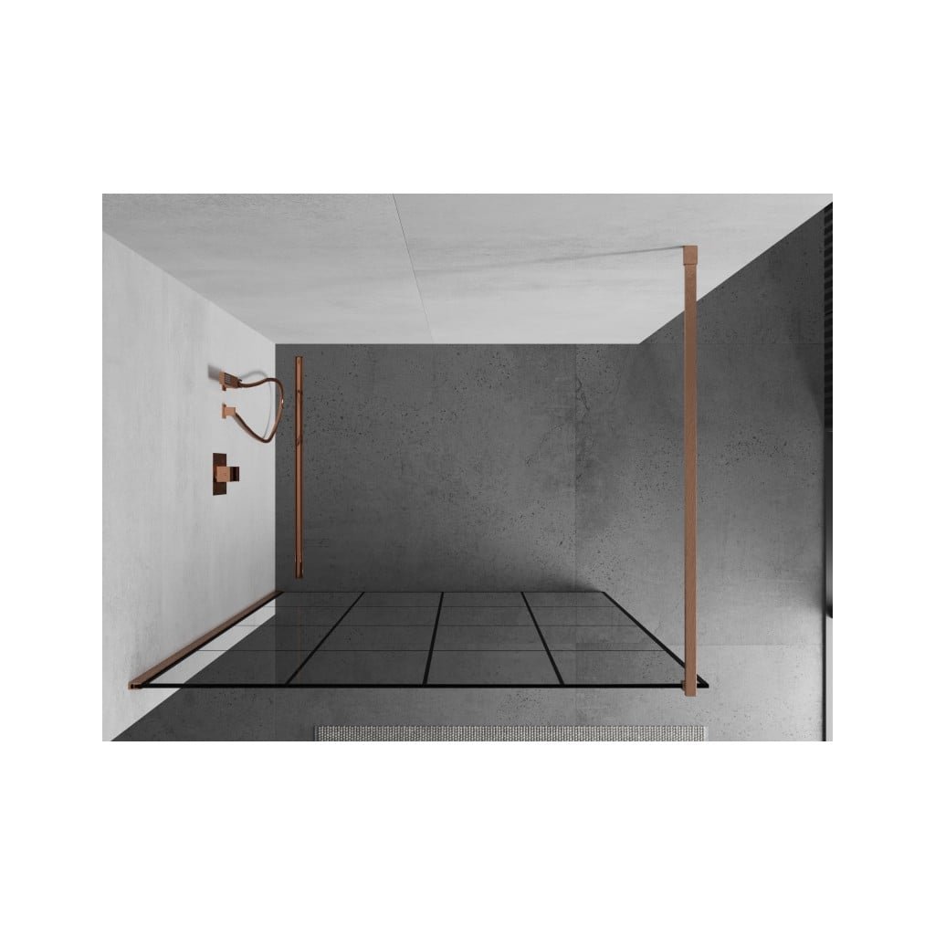 Mexen Kioto, sprchová zástěna Walk-In 150 x 200 cm, 8mm čiré sklo černý vzor, měděný matný profil, 800-150-101-65-77