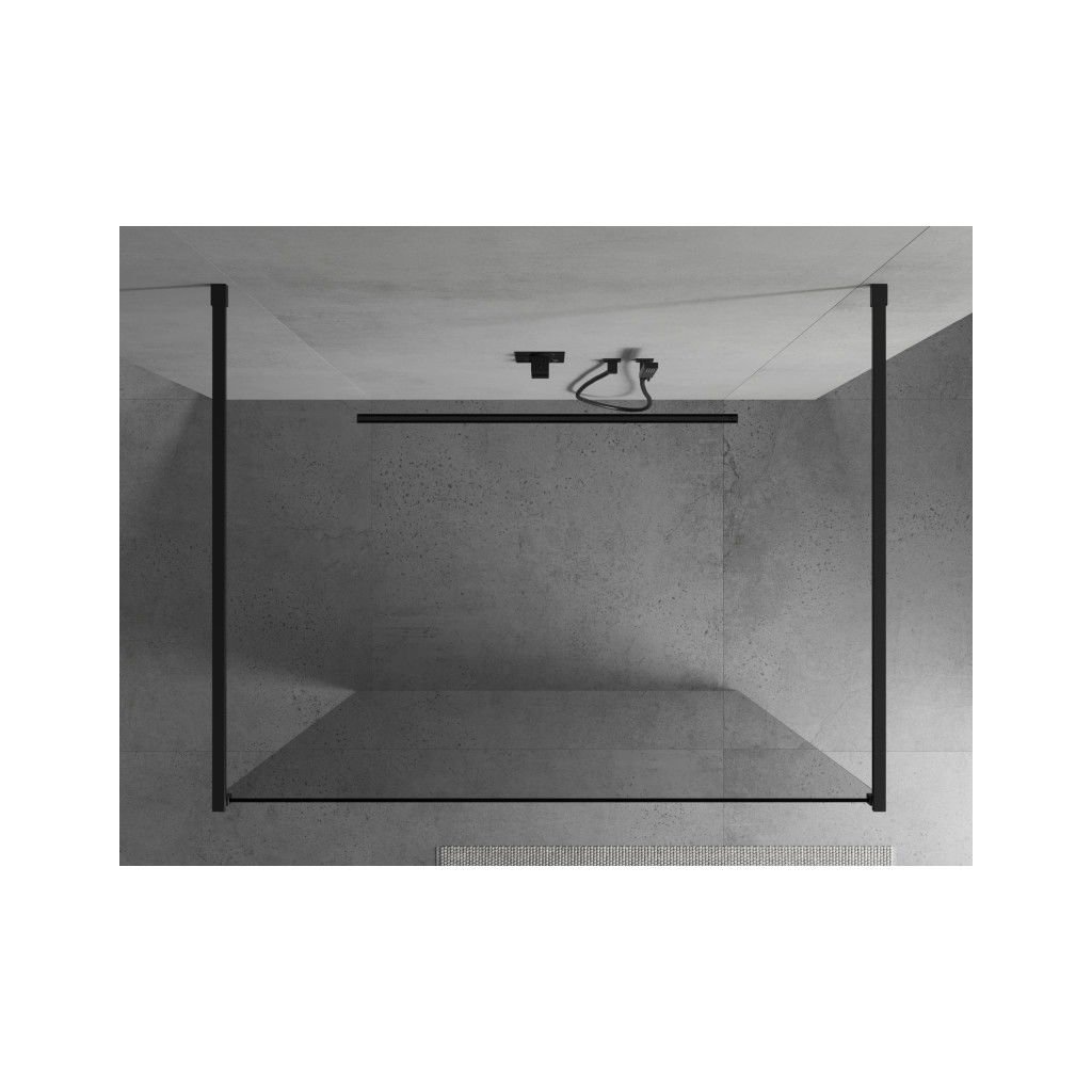 Mexen Kioto, sprchová zástěna Walk-In 155 x 200 cm, 8mm čiré sklo, černý profil, 800-155-002-70-00