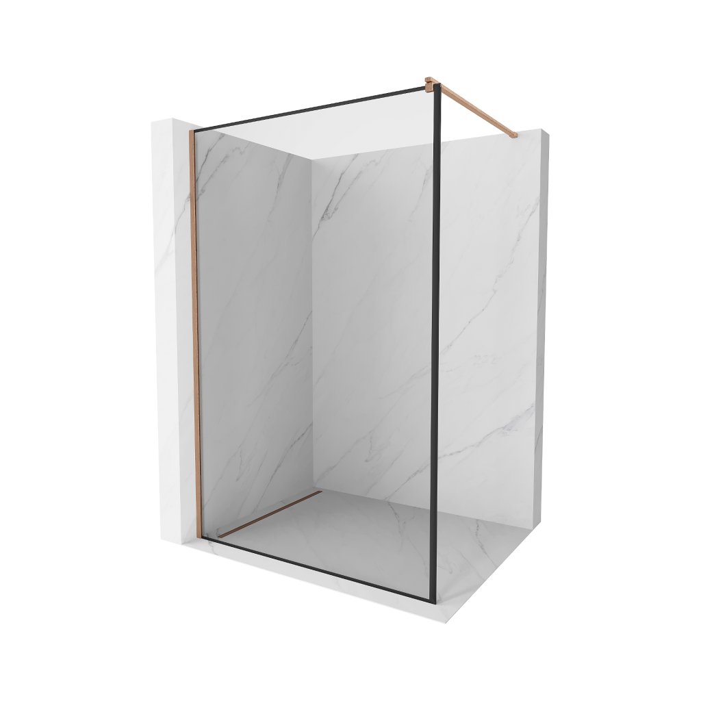 Mexen Kioto, sprchová zástěna Walk-In 160 x 200 cm, 8mm čiré sklo černý vzor, měděný matný profil, 800-160-101-65-70