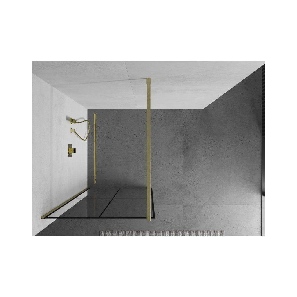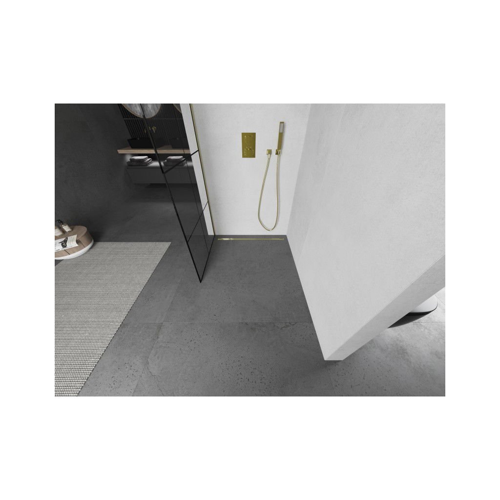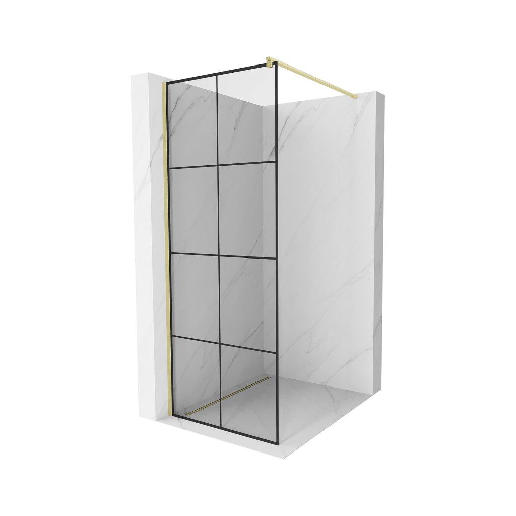 Mexen Kioto, sprchová zástěna Walk-In 70 x 200 cm, 8mm čiré sklo černý vzor, zlatý matný profil, 800-070-101-55-77