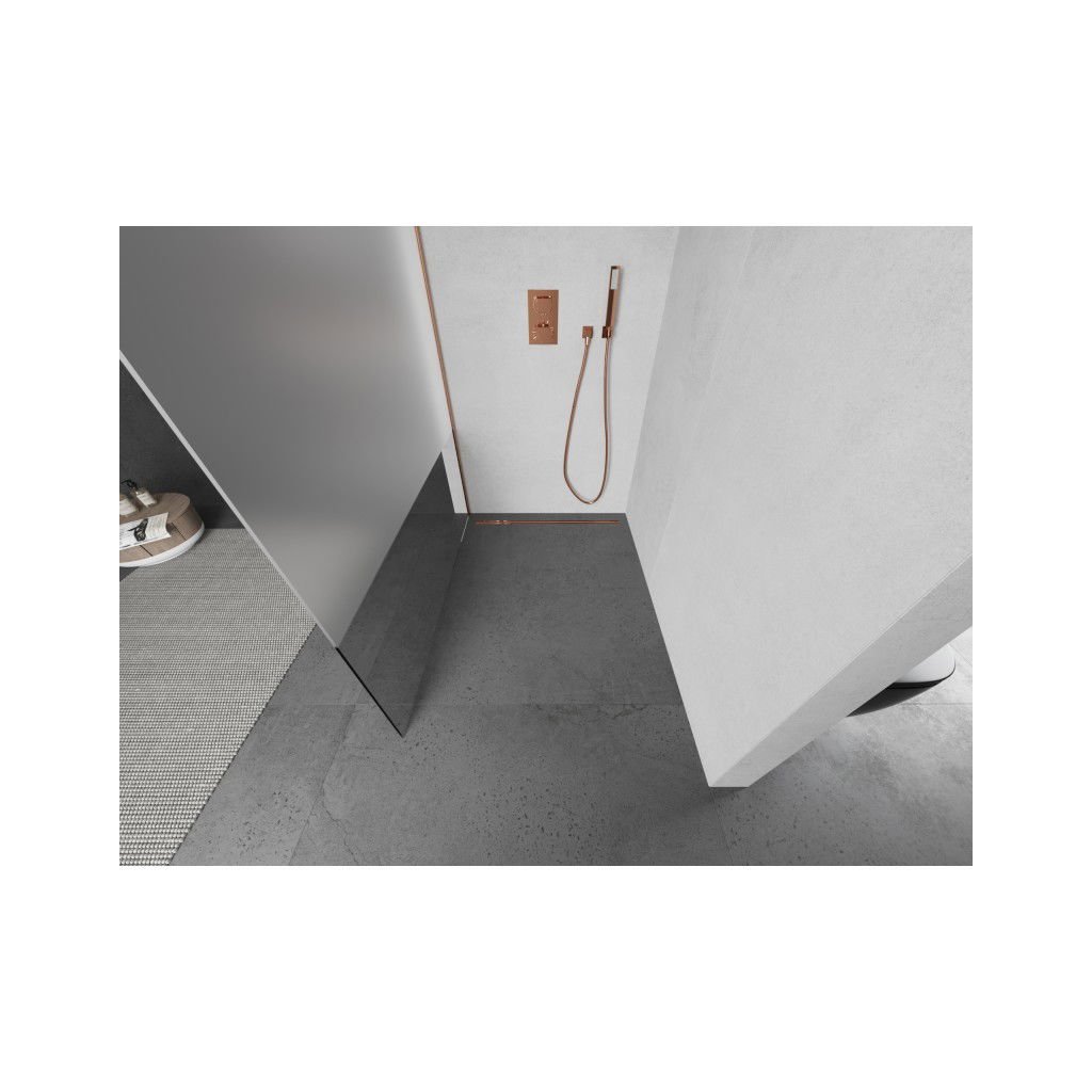 Mexen Kioto, sprchová zástěna Walk-In 70 x 200 cm, 8mm čiré sklo-námraza, měděný matný profil, 800-070-101-65-35