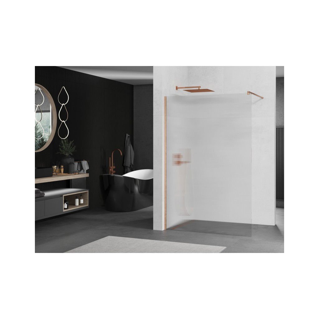 Mexen Kioto, sprchová zástěna Walk-In 70 x 200 cm, 8mm sklo s žebrovým vzorem, měděný matný profil, 800-070-101-65-09