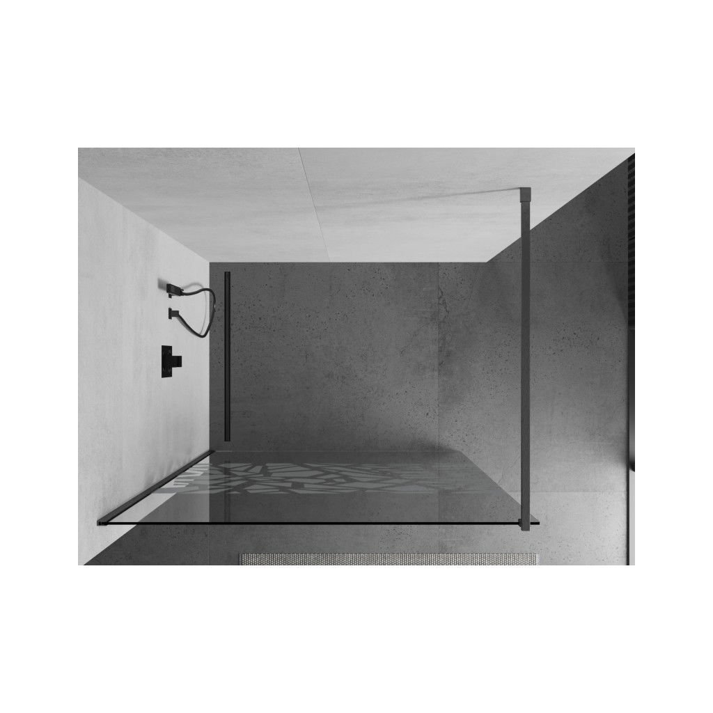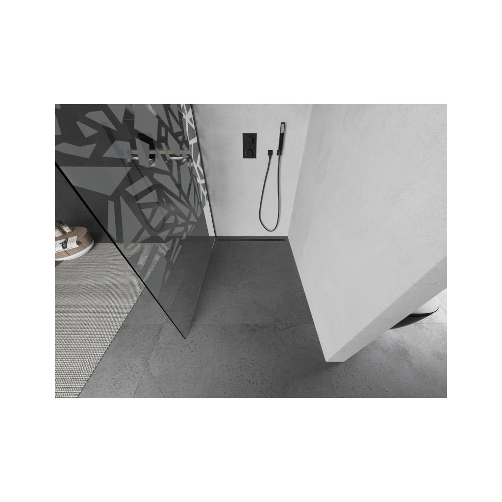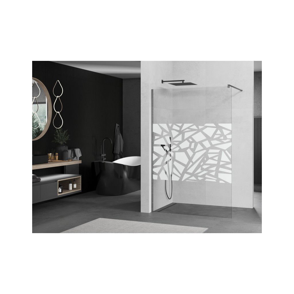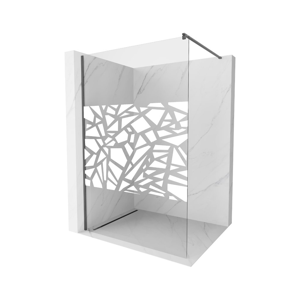 Mexen Kioto, sprchová zástěna Walk-In 80 x 200 cm, 8mm čiré sklo bílý vzor, grafitový profil, 800-080-101-66-85