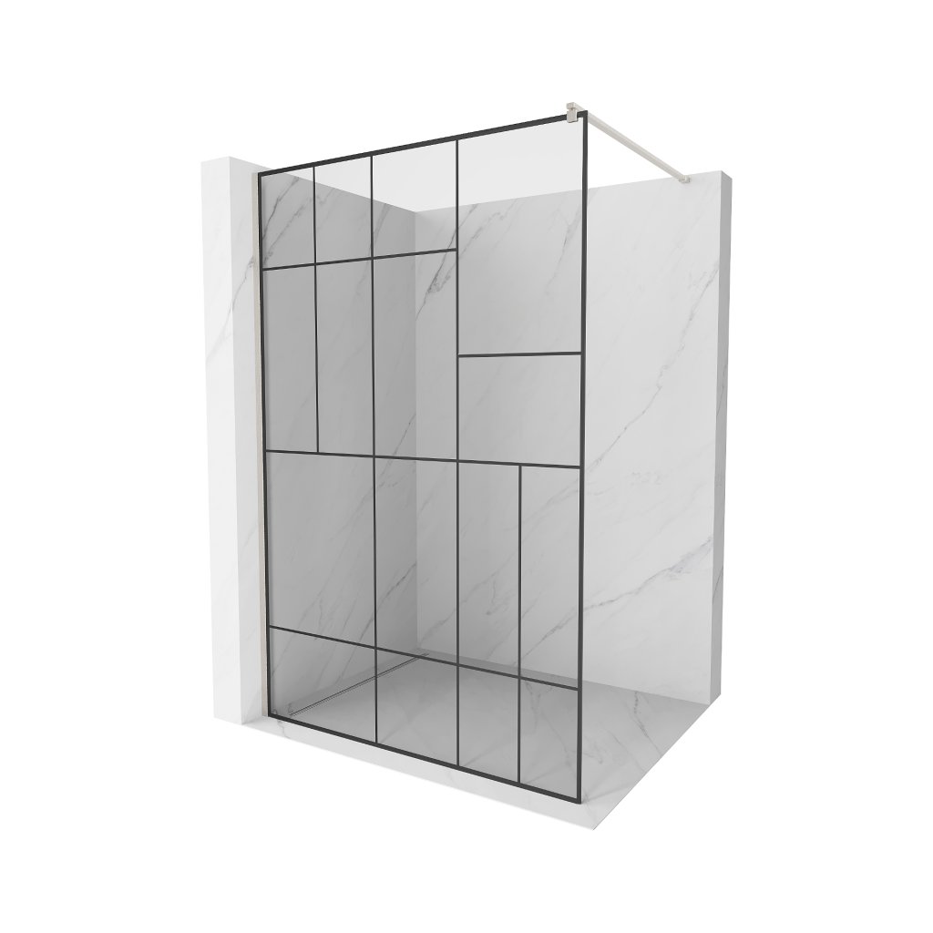 Mexen Kioto, sprchová zástěna Walk-In 90 x 200 cm, 8mm čiré sklo černý vzor, broušená ocel profil, 800-090-101-97-78