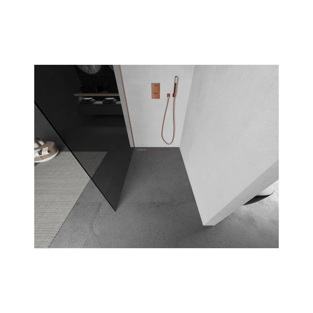 Mexen Kioto, sprchová zástěna Walk-In 90 x 200 cm, 8mm šedé sklo, měděný matný profil, 800-090-101-65-40