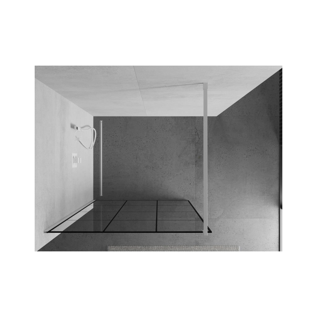 Mexen Kioto, Walk-In sprchová zástěna 100 x 200 cm, 8mm sklo čiré/černý vzor, bílý profil, 800-100-101-20-77