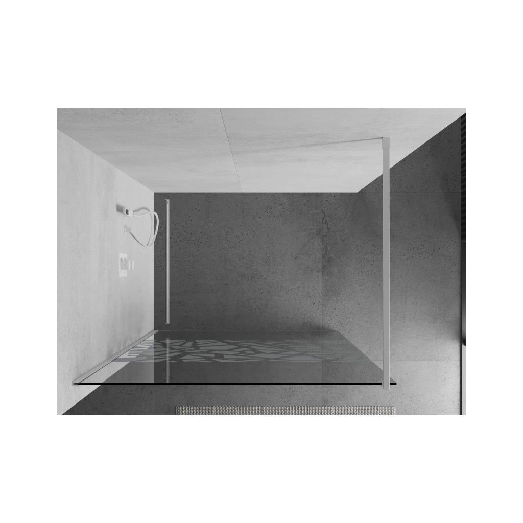 Mexen Kioto, Walk-In sprchová zástěna 80 x 200 cm, 8mm sklo čiré/bílý vzor, bílý profil, 800-080-101-20-85