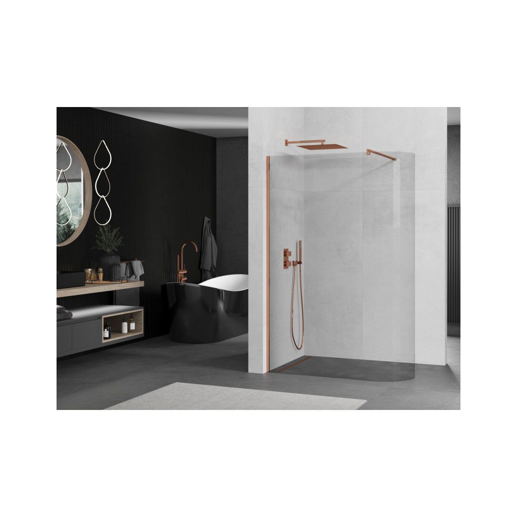 Mexen Kioto, zaoblená sprchová zástěna 130 x 200 cm, 8mm čiré sklo, růžové zlato profil, 800-130-101-60-06