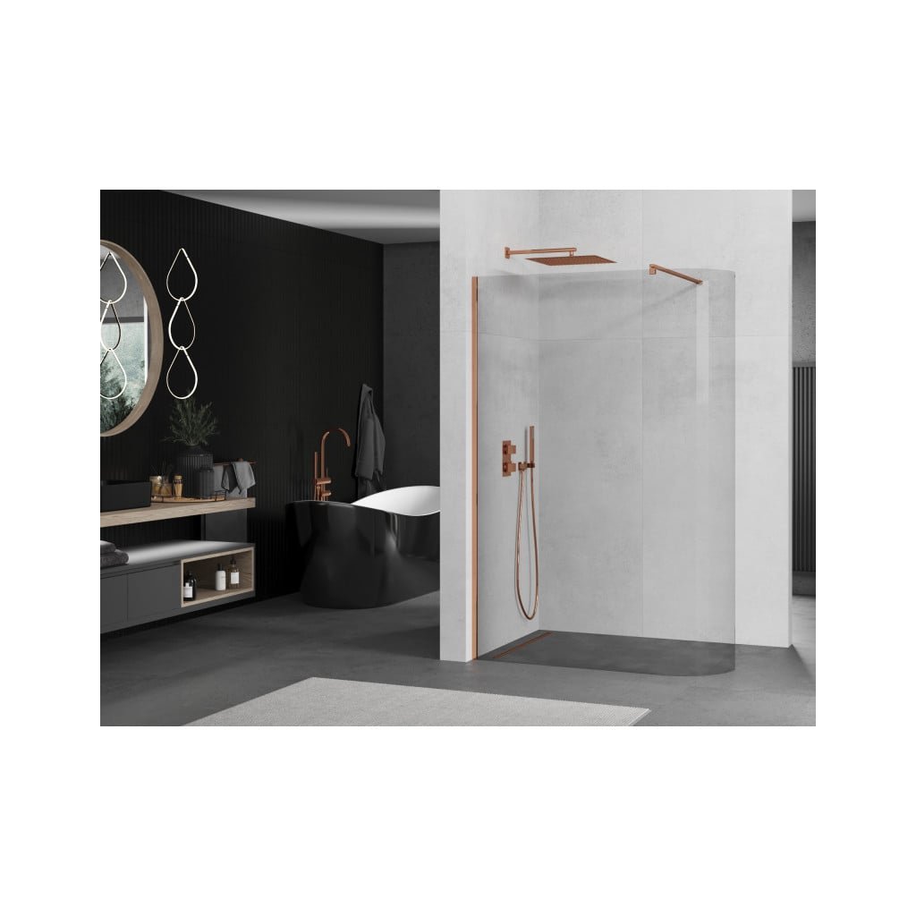 Mexen Kioto, zaoblená sprchová zástěna 90 x 200 cm, 8mm čiré sklo, růžové zlato profil, 800-090-101-60-06