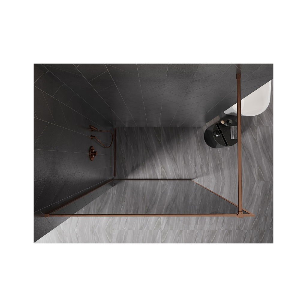Mexen Kioto-F, sprchová zástěna s rámem 100 x 202 cm, 8 mm šedé sklo, profil měděná matná, 800-100-104-65-40