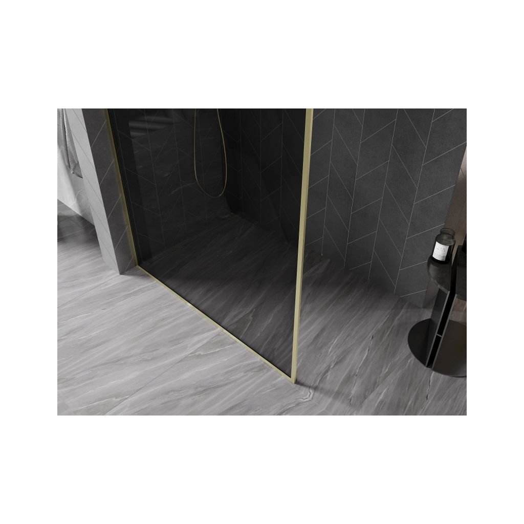 Mexen Kioto-F, sprchová zástěna s rámem 120 x 202 cm, 8 mm šedé sklo, zlatý matný profil, 800-120-104-55-40