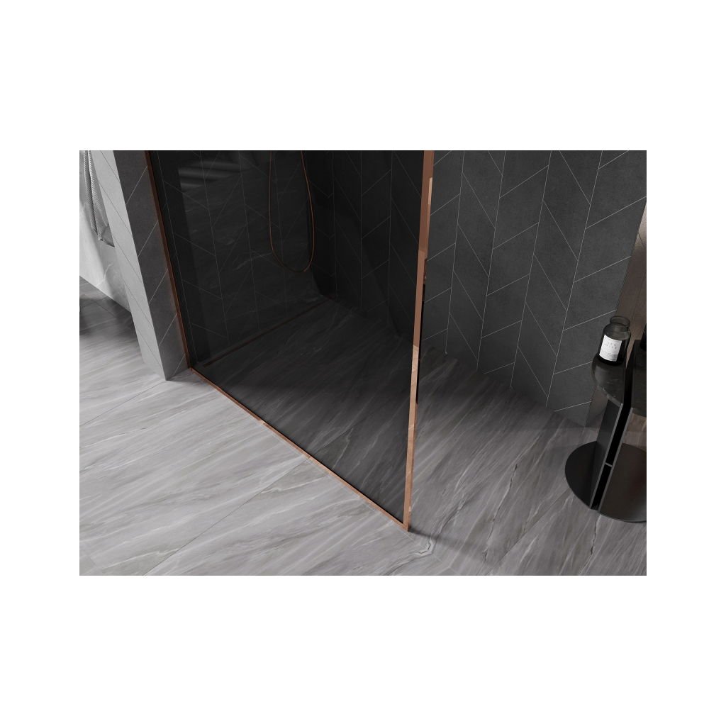 Mexen Kioto-F, sprchová zástěna s rámem 140 x 202 cm, 8 mm šedé sklo, profil růžové zlato, 800-140-104-60-40