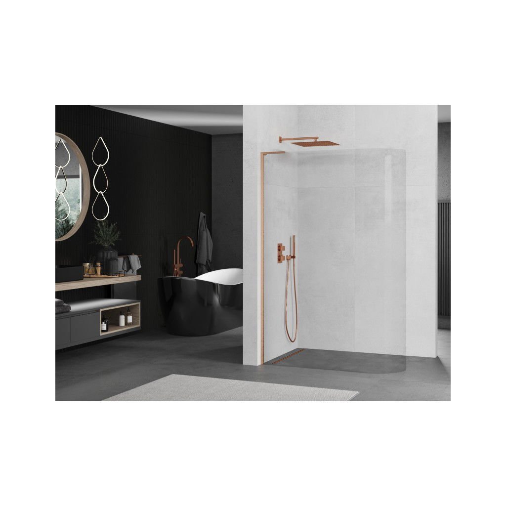 Mexen Kioto L, sprchová zástěna Walk-In 100 x 200 cm, 8mm čiré sklo, měděný matný profil, 800-100-103-65-06
