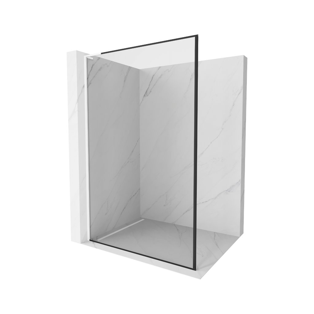 Mexen Kioto L, sprchová zástěna Walk-In 100 x 200 cm, 8mm čiré sklo černý vzor, bílý profil, 800-100-103-20-70