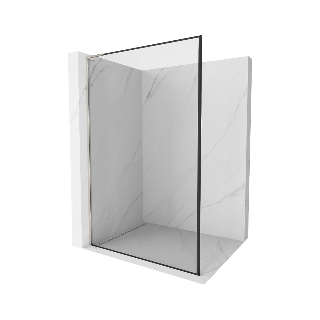 Mexen Kioto L, sprchová zástěna Walk-In 100 x 200 cm, 8mm čiré sklo černý vzor, broušená ocel profil, 800-100-103-97-70