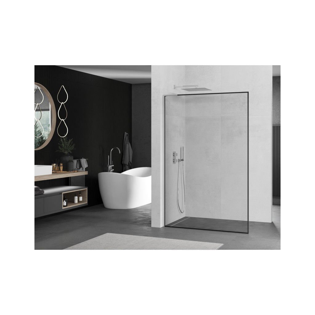 Mexen Kioto L, sprchová zástěna Walk-In 100 x 200 cm, 8mm čiré sklo černý vzor, chromový profil, 800-100-103-01-70