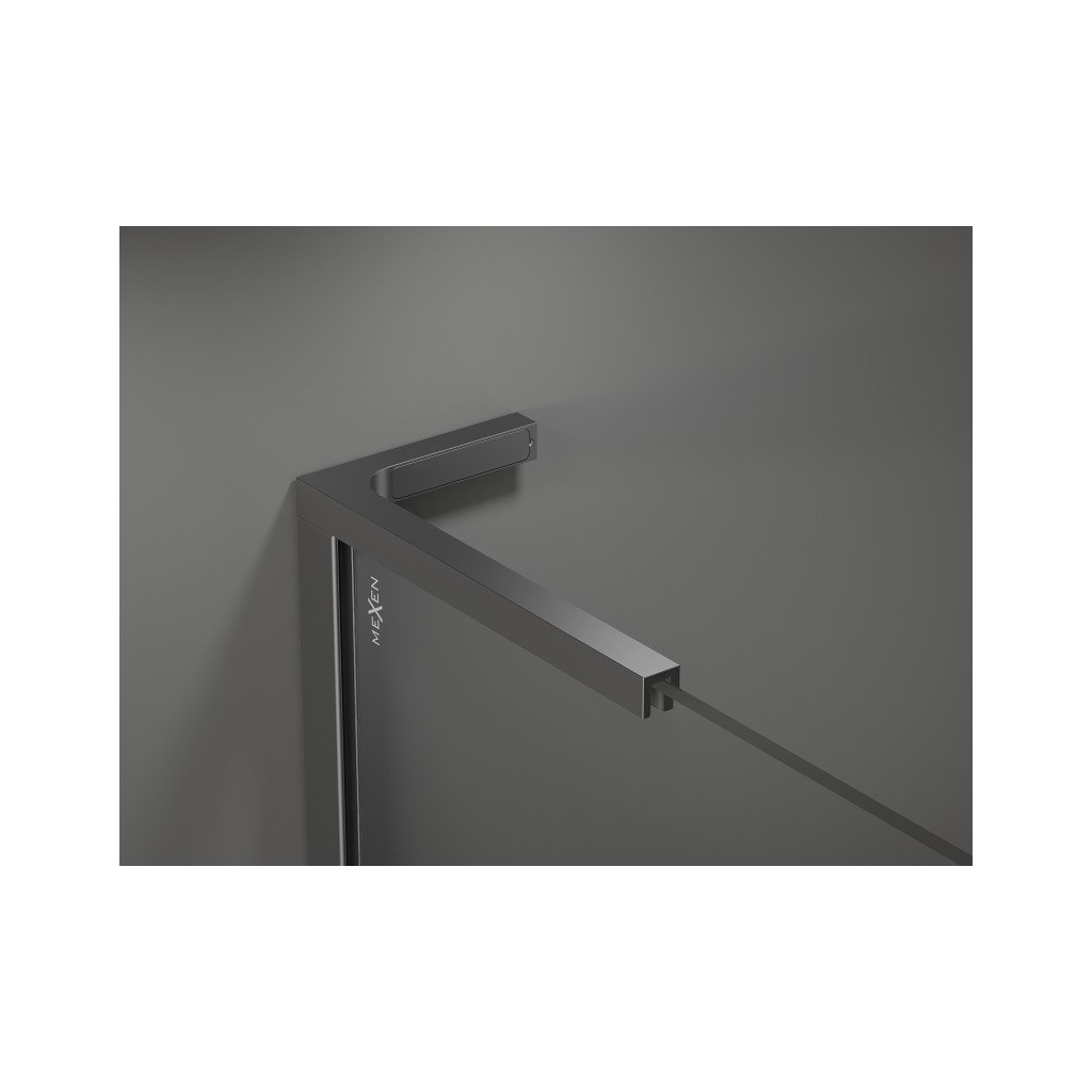 Mexen Kioto L, sprchová zástěna Walk-In 110 x 200 cm, 8mm čiré sklo černý vzor, grafitový profil, 800-110-103-95-78