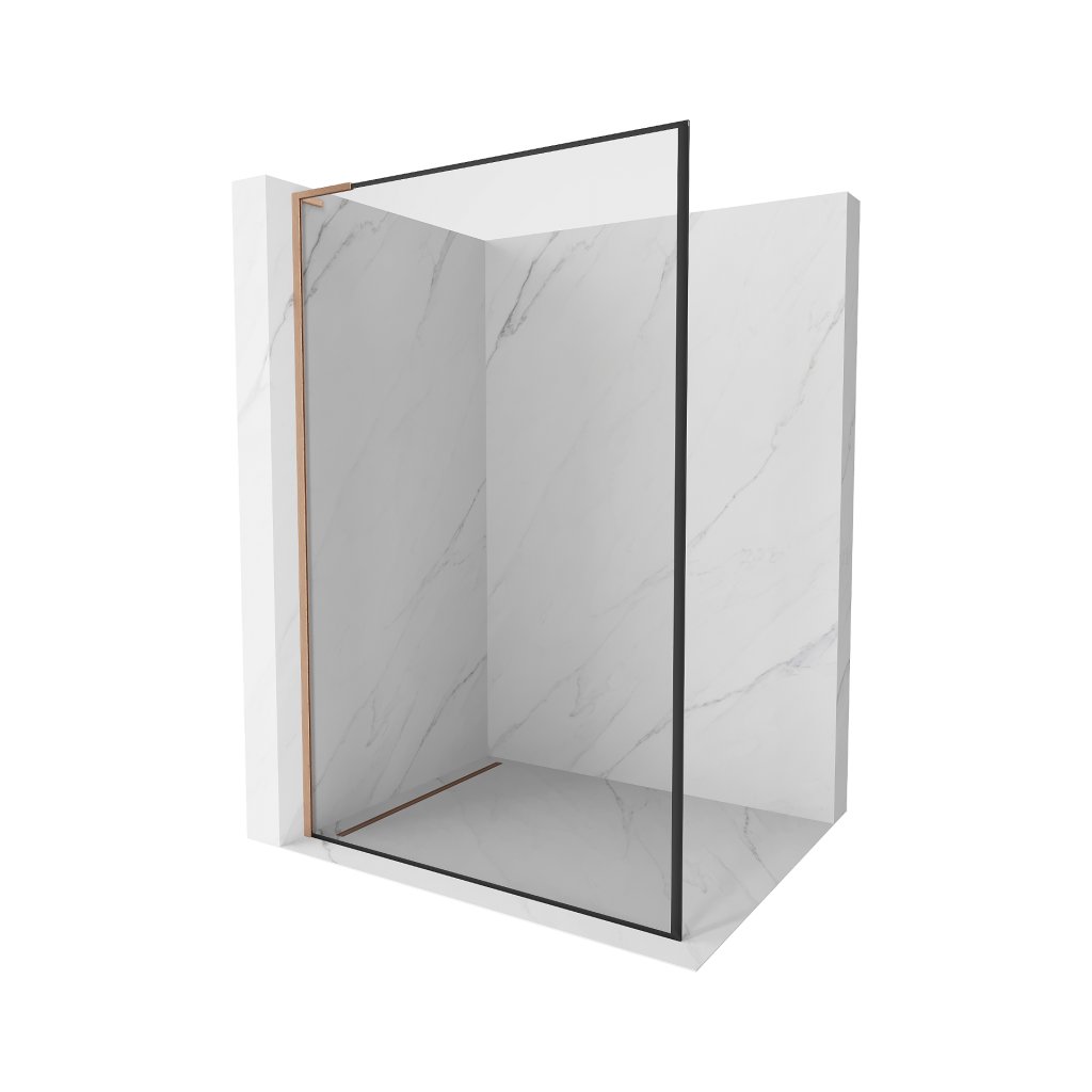 Mexen Kioto L, sprchová zástěna Walk-In 110 x 200 cm, 8mm čiré sklo černý vzor, měděný matný profil, 800-110-103-65-70