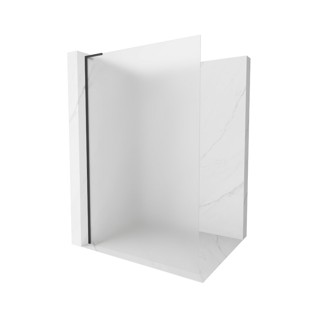 Mexen Kioto L, sprchová zástěna Walk-In 110 x 200 cm, 8mm sklo námraza, černý profil, 800-110-103-70-30