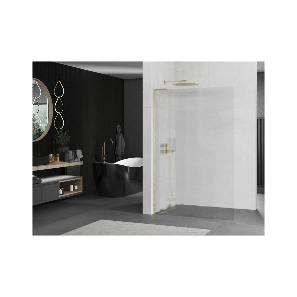 Mexen Kioto L, sprchová zástěna Walk-In 70 x 200 cm, 8mm sklo s žebrovým vzorem, zlatý matný profil, 800-070-103-55-09